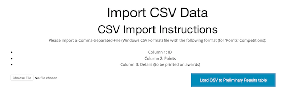 Note If you have a competition which has a judging system which is not supported by this online judging system, you should use a "Points" Competition in order to be able to import the results for Awards Printing and official record keeping.