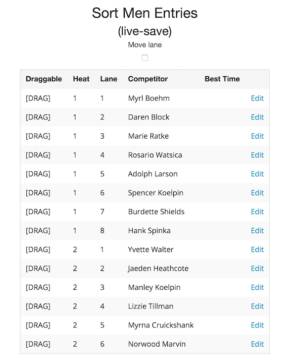 - Have the system pre-assign competitors to heats/lanes based on their entered best times